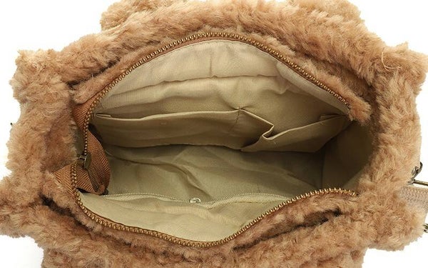 Deze volledig met zacht teddy-materiaal afgewerkte tas is een echte eyecatcher en ideaal voor koude dagen. Het grote hoofdvak biedt royaal opbergruimte en sluit af met een stevige ritssluiting, zodat je spullen altijd veilig zijn opgeborgen. Binnenin vind je drie handige kleinere vakjes, waarvan één met ritssluiting, voor het veilig opbergen van je waardevolle items. Verder heeft de tas een lange verstelbare band.