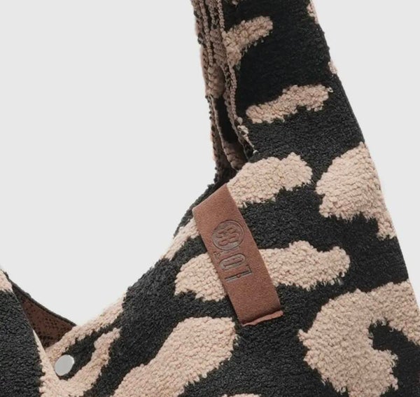 Deze prachtige gecombineerde gemengde tas is perfect voor het doen van boodschappen of het toevoegen van een stijlvolle touch aan je boeken. Gemaakt van 100% polyester, sluit hij veilig met een magnetische knoop. Natuurlijk is het LOT83 vegan leren label een opvallend kenmerk op deze gebreide tas.